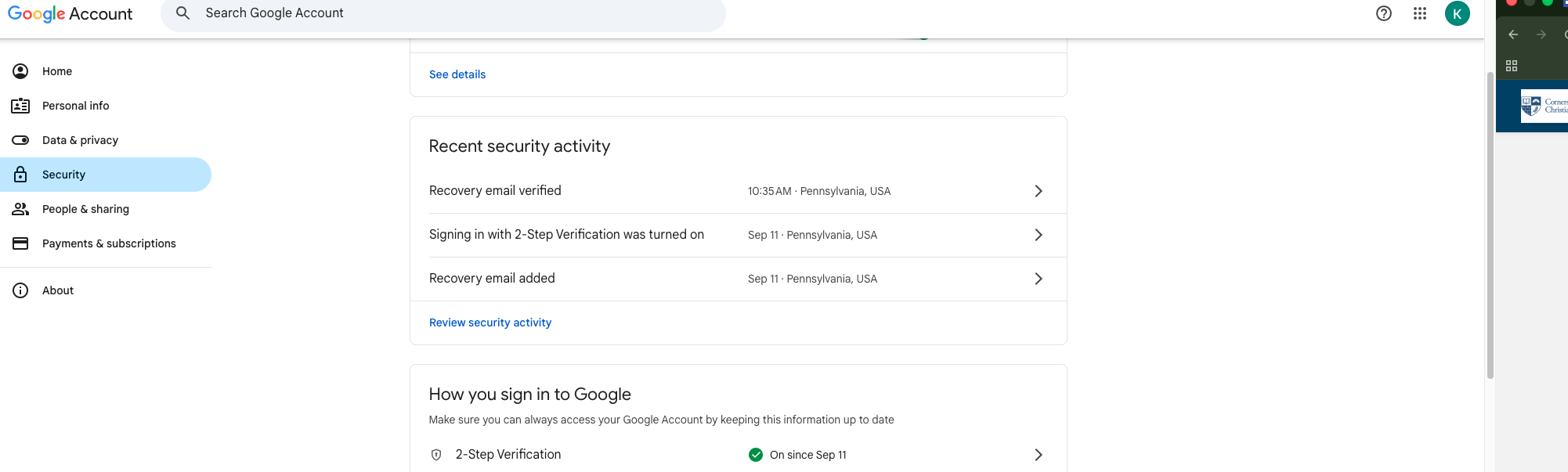 3. Once you are on the Security page scroll down to the bottom. You will see the setup for 2-Step Verification options under How you sign in to Google. Under how you sign in to Google, you have different Options on how you want to setup 2-Step Verification for yourself. You can choose one, or all like it is displayed in the screenshot below. You can also add More Options at the bottom of the screenshot as well if you choose too. For more security on your account. (Exp:Authenticator, BackUp 2-Step Verification, and Backup codes.)