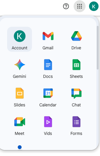 Log into your google account. Once you are logged in go to the top right corner next to your initial(s) and click Account. Note: There are two logos once you sign in with your initial displaying. Click the one on the actual webpage and not the one displaying over top of "All Bookmarks"