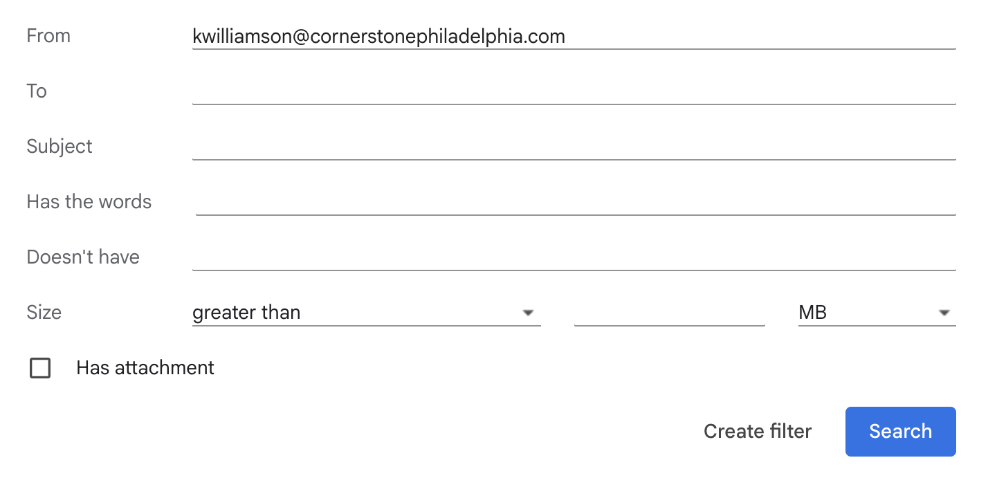 3. Once you are in "filter messages like these." You will see the senders email appear at the top. next click "Create filter."