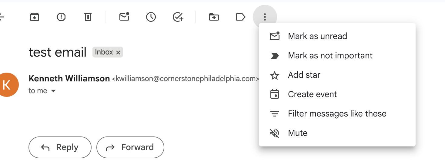 2. Click the 3 dots at the top of email you want to send to spam or trash and select Filter messages like these.