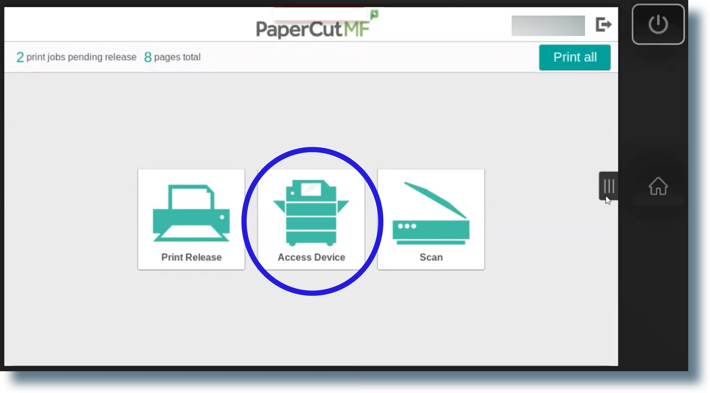 Login to an printer (see this page) and tap the Copy button. The screen will change to the MFP's (Multi Function Printer) copy interface, showing choices for 1 or 2-sided, B/W or Color, # of copies, etc. Tap the Copy physical button to start the copy, or you can tap the 1 button to go back (see example image below).